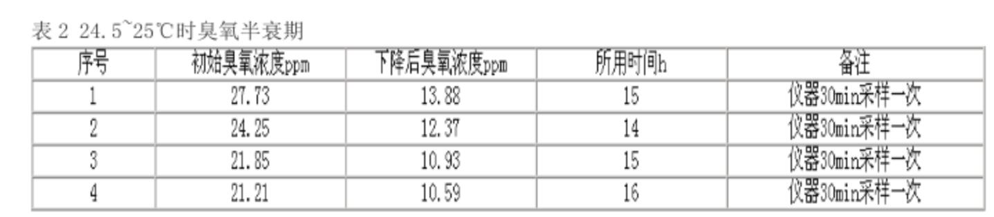 2000年6月,筆者曾在珠海觀察過臭氧濃度降低一半的時間,約為3h,當時的環(huán)境溫度為32~33℃。