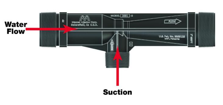 - 為獲得很好的性能,文丘里管入口和出口之間的壓差應達到 20 PSI 或更大