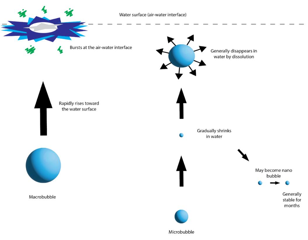 與大氣泡不同,納米氣泡不會(huì)由于浮力而上升到水面。與微氣泡不同,納米氣泡不會(huì)通過(guò)溶解到水中而消失在水中,而是保持納米氣泡(超細(xì))氣泡狀態(tài)。在液體中壽命長(zhǎng)的納米氣泡會(huì)隨機(jī)移動(dòng),而不是像較大的氣泡那樣向上移動(dòng)。這種隨機(jī)的,有時(shí)是橫向的,有時(shí)是垂直的,甚至是向下的現(xiàn)象被稱為布朗運(yùn)動(dòng)。